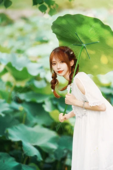 Toplist Dã ngoại – nữ – trắng – xanh lá – tươi tắn – dễ thương – trong trẻo – ngoài trời – hồ sen – DNVIP004