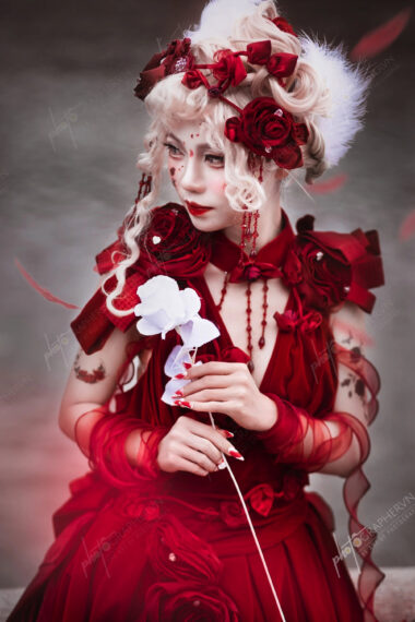 Toplist Dã ngoại – nữ – trắng – đỏ – ma mị – makeup đậm – tóc vàng – ngoài trời – hoa hồng – DNVIP001
