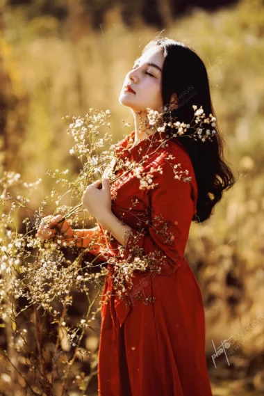 Toplist Dã ngoại – nữ – đỏ – vàng – hoài niệm – nội tâm – ngoài trời – mùa thu – ánh nắng – cây cỏ – cánh đồng – DNVIP003