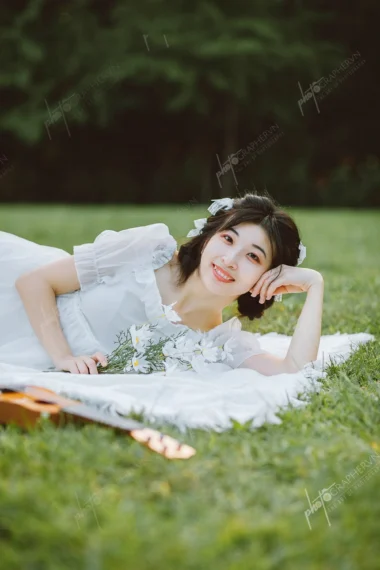 Toplist Dã ngoại – nữ – trắng – xanh lá – tươi tắn – dễ thương – trong trẻo – ngoài trời – cây cỏ – hoa cúc họa mi – nơ – đàn – DNVIP002