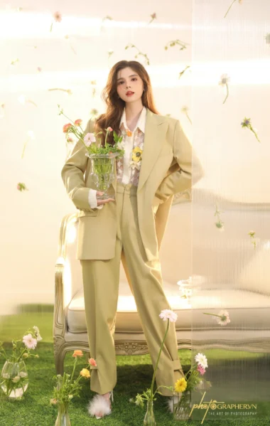 quantrivienTháng 8 4, 2025 Beauty – nữ – vàng pastel – sang trọng – thần thái – studio – sofa – thảm cỏ – BEAU001