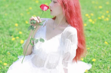 Dã ngoại – nữ – trắng – dễ thương – trong trẻo – ngoài trời – ánh nắng – hoa hồng – DNGOLD004