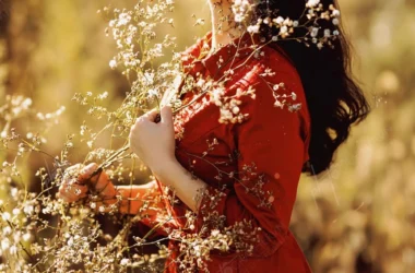 Dã ngoại – nữ – đỏ – vàng – hoài niệm – nội tâm – ngoài trời – mùa thu – ánh nắng – cây cỏ – cánh đồng – DNVIP003 Tháng 7 22, 2025