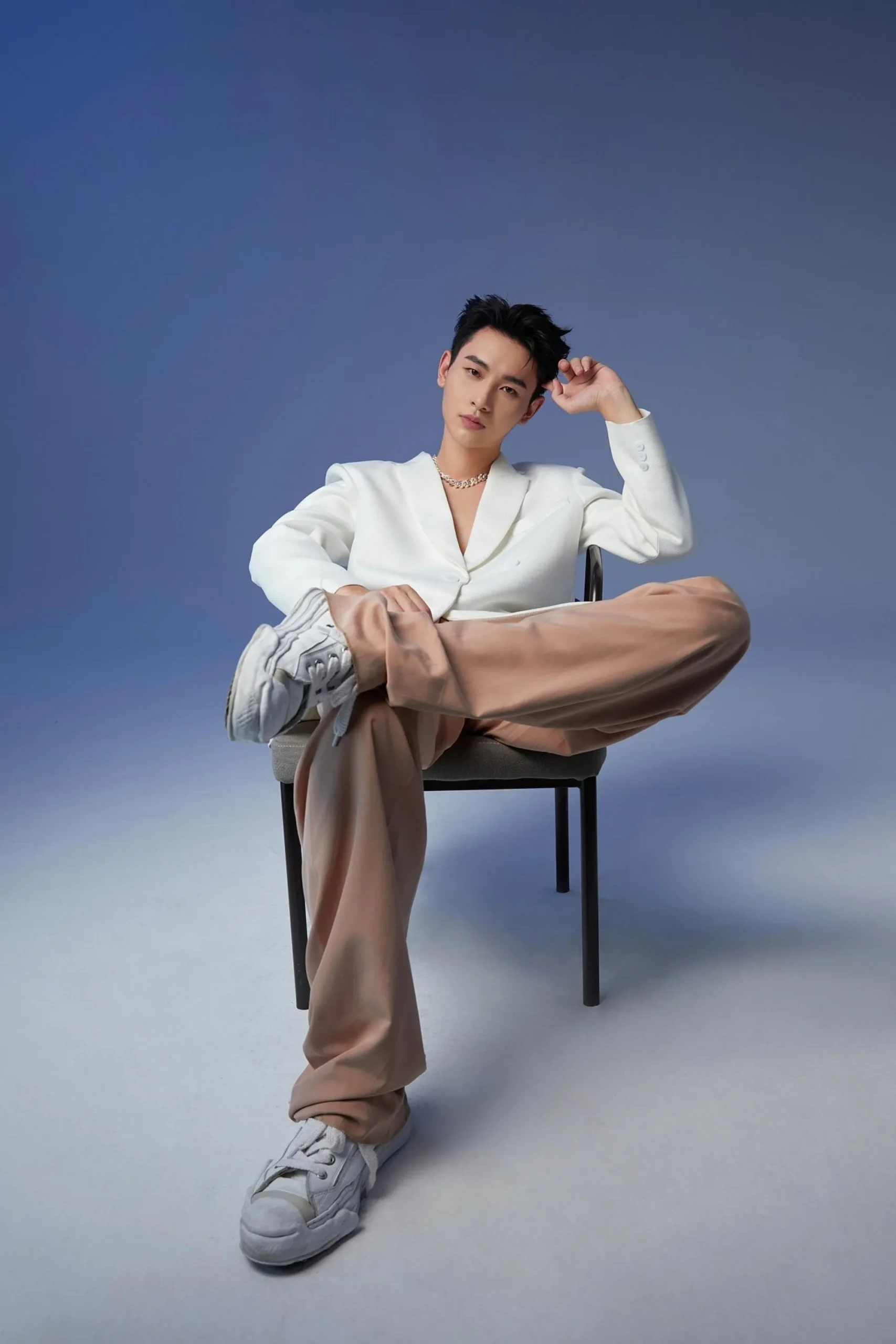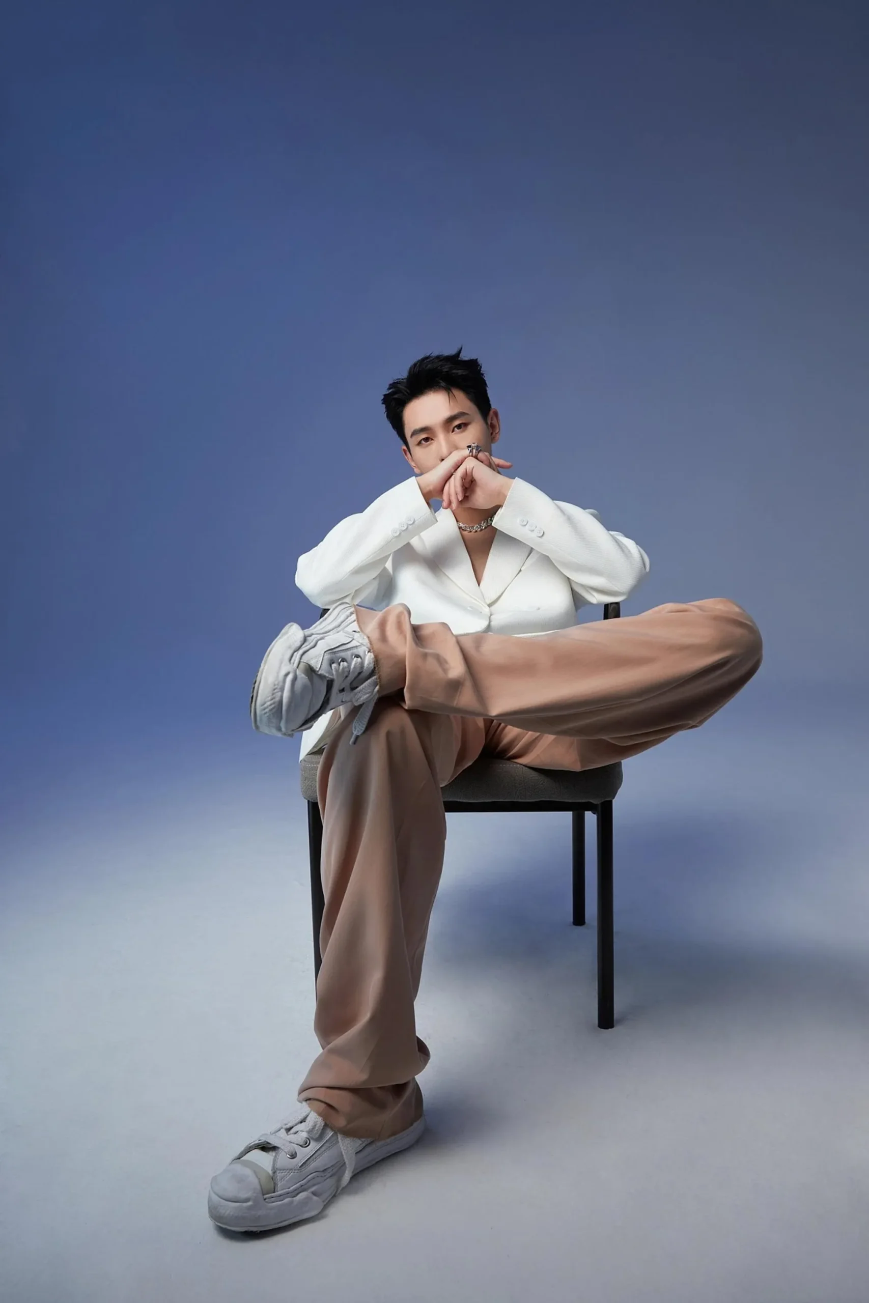 Chân dung – nam – xanh dương – trắng – be – pose dáng – lịch lãm – Hàn Quốc – studio – ghế – CDNPRO005