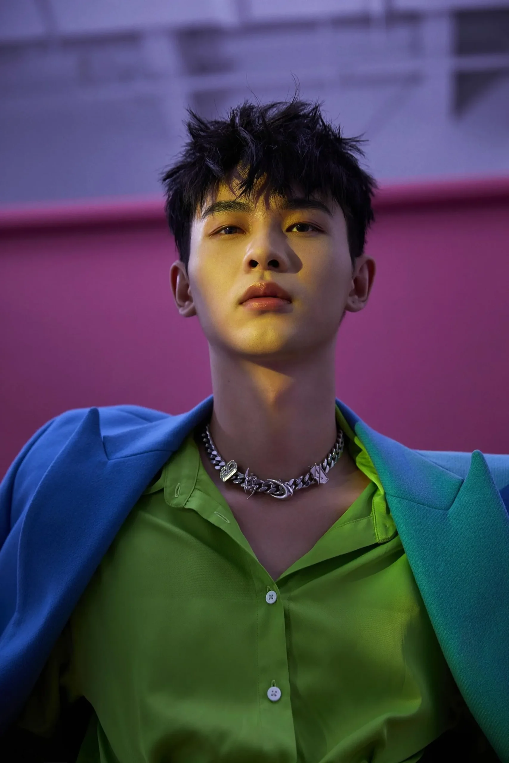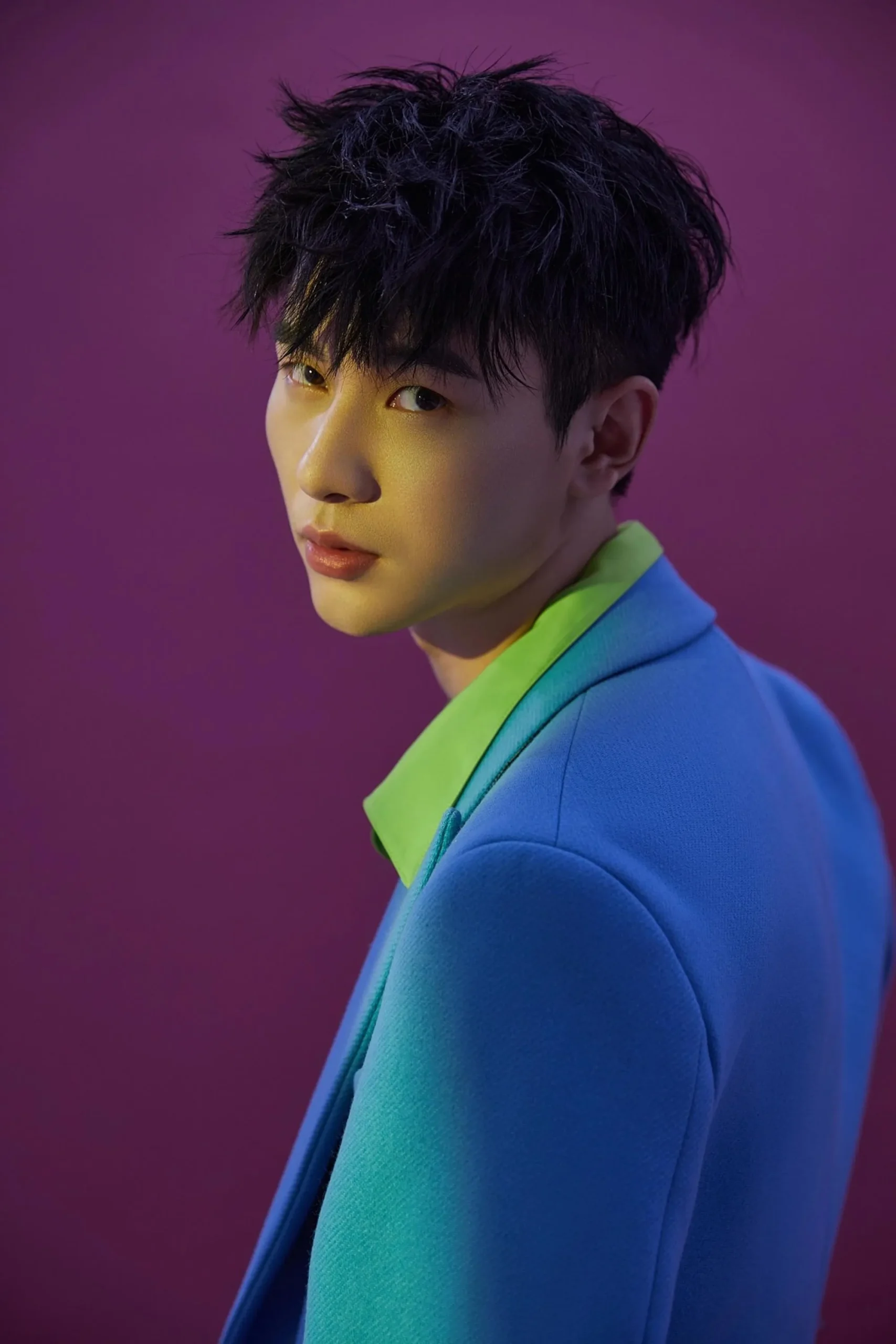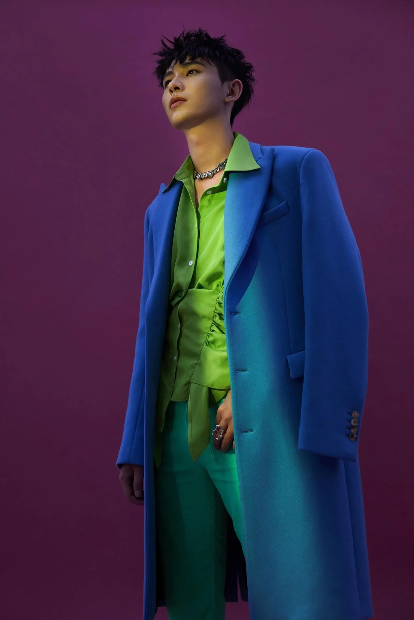 Chân dung – nam – neon – thời trang – nền tím – áo xanh – pose dáng – studio – CDNPRO001