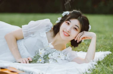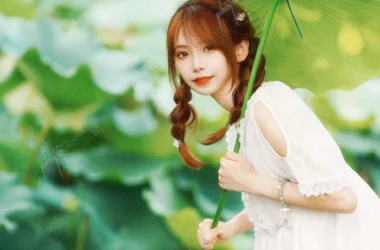 Dã ngoại – nữ – trắng – xanh lá – tươi tắn – dễ thương – trong trẻo – ngoài trời – hồ sen – DNVIP004