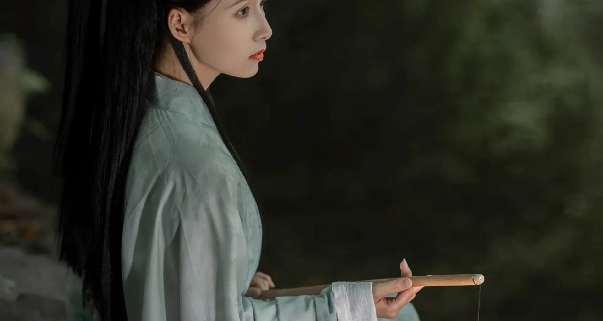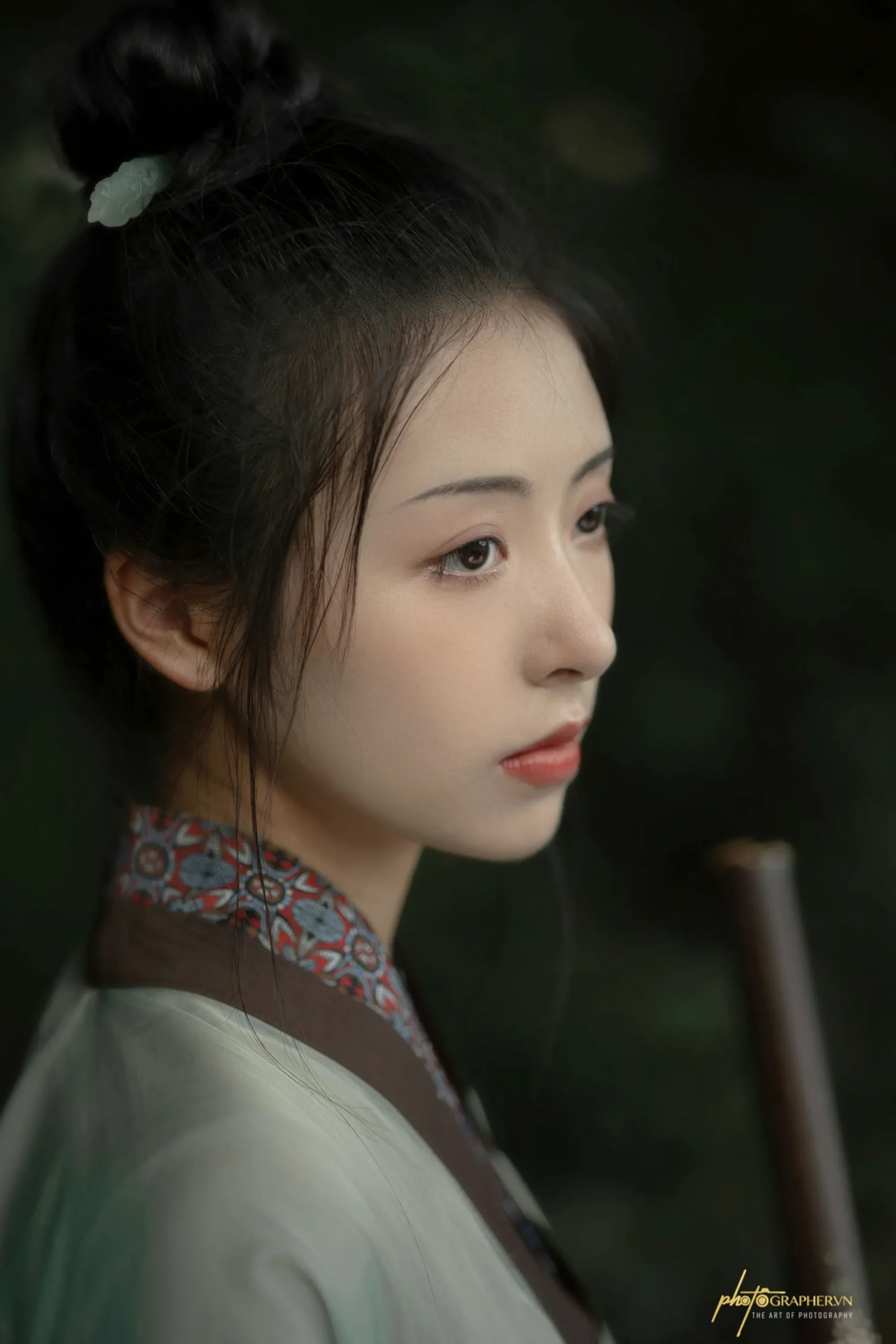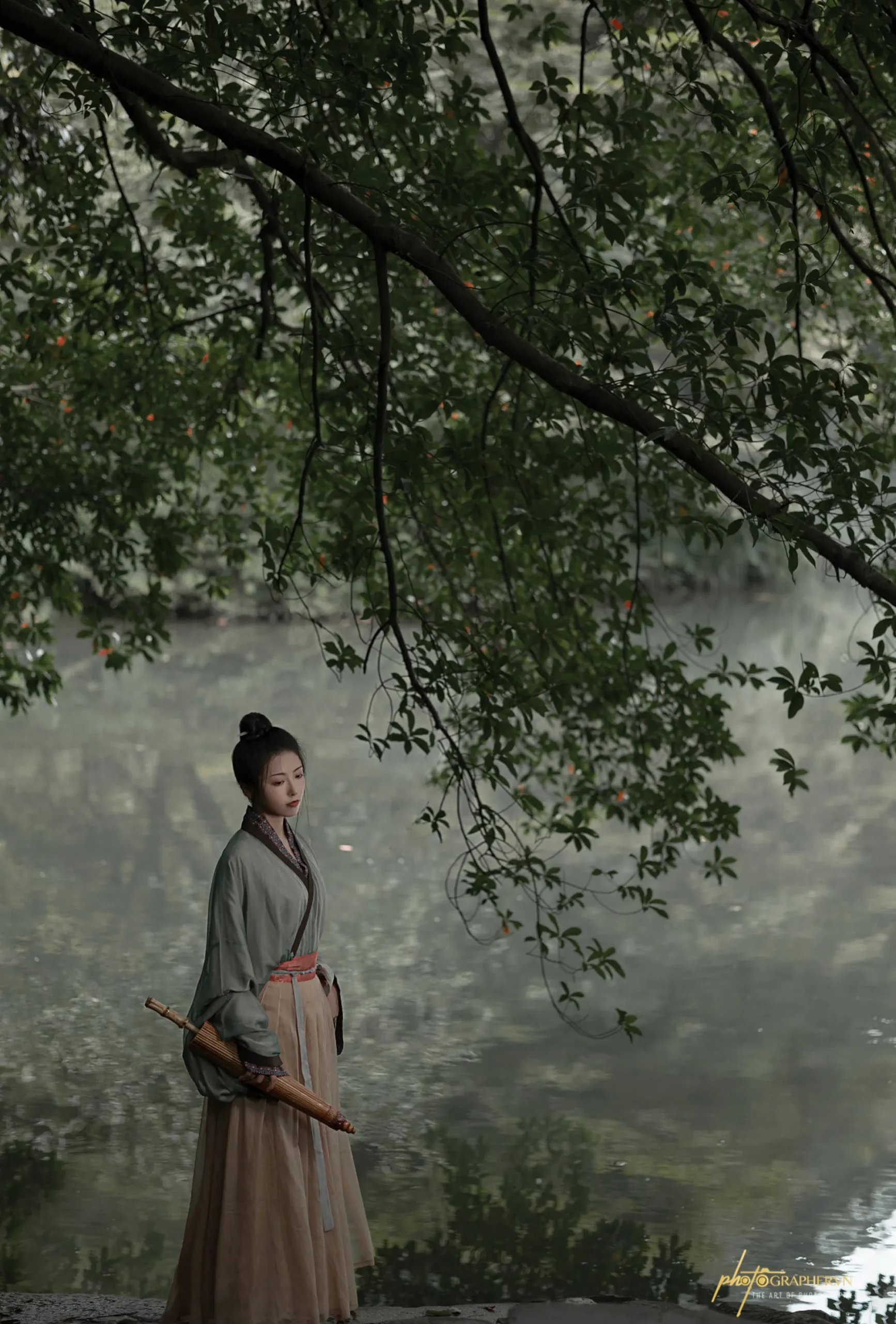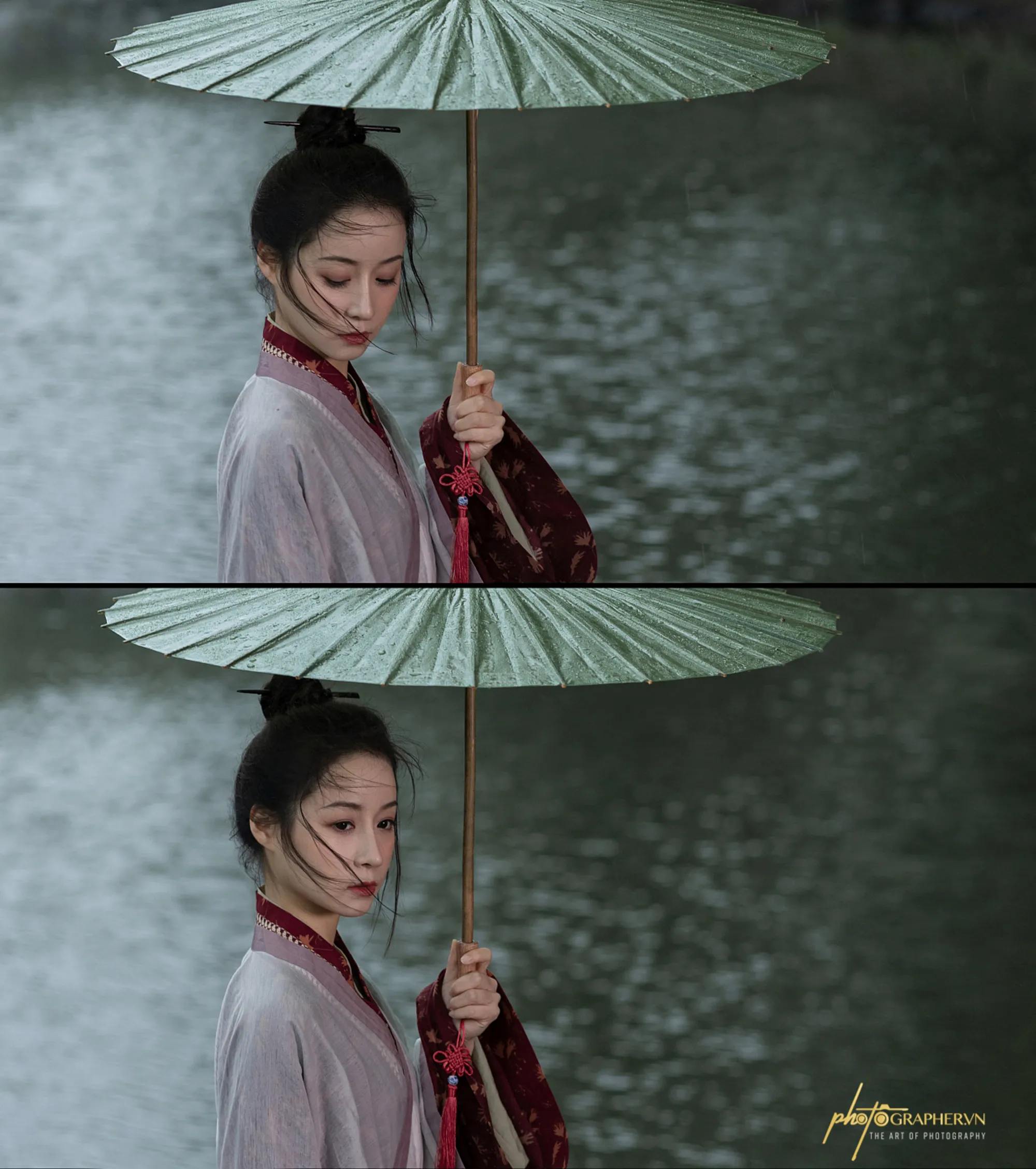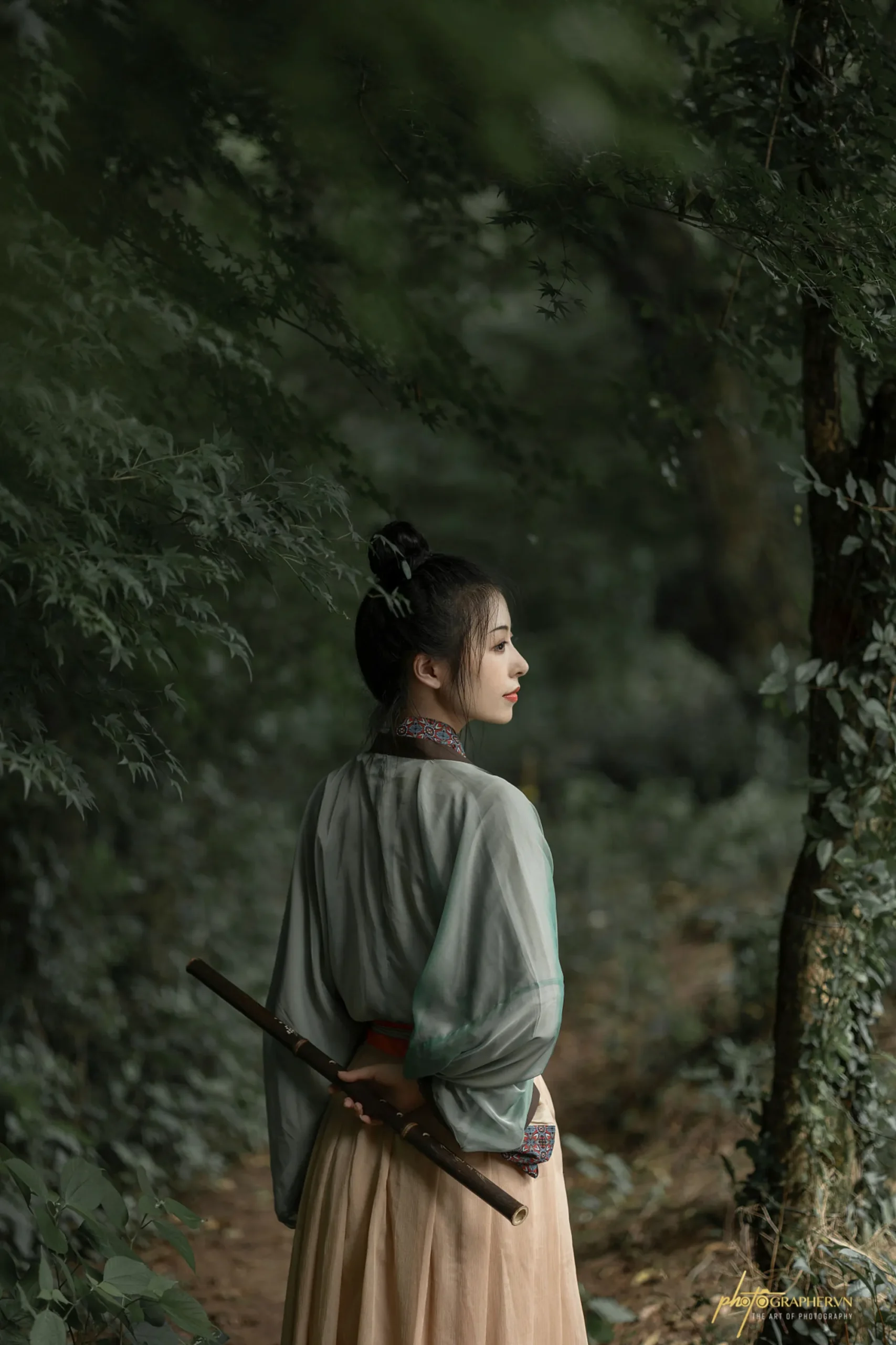 Cổ trang – nữ – xanh lá – trầm lắng – ngoài trời – rừng cây – lồng đèn – ô – CTN001
