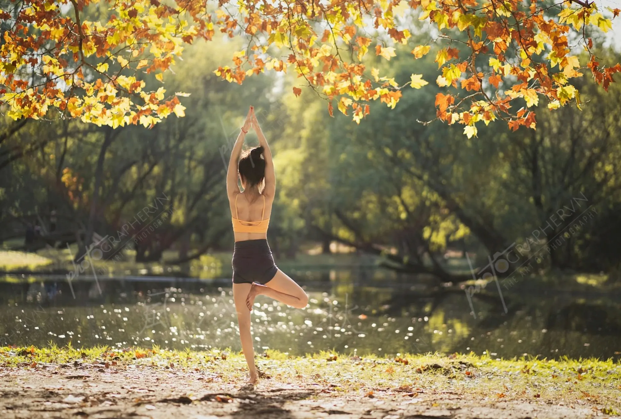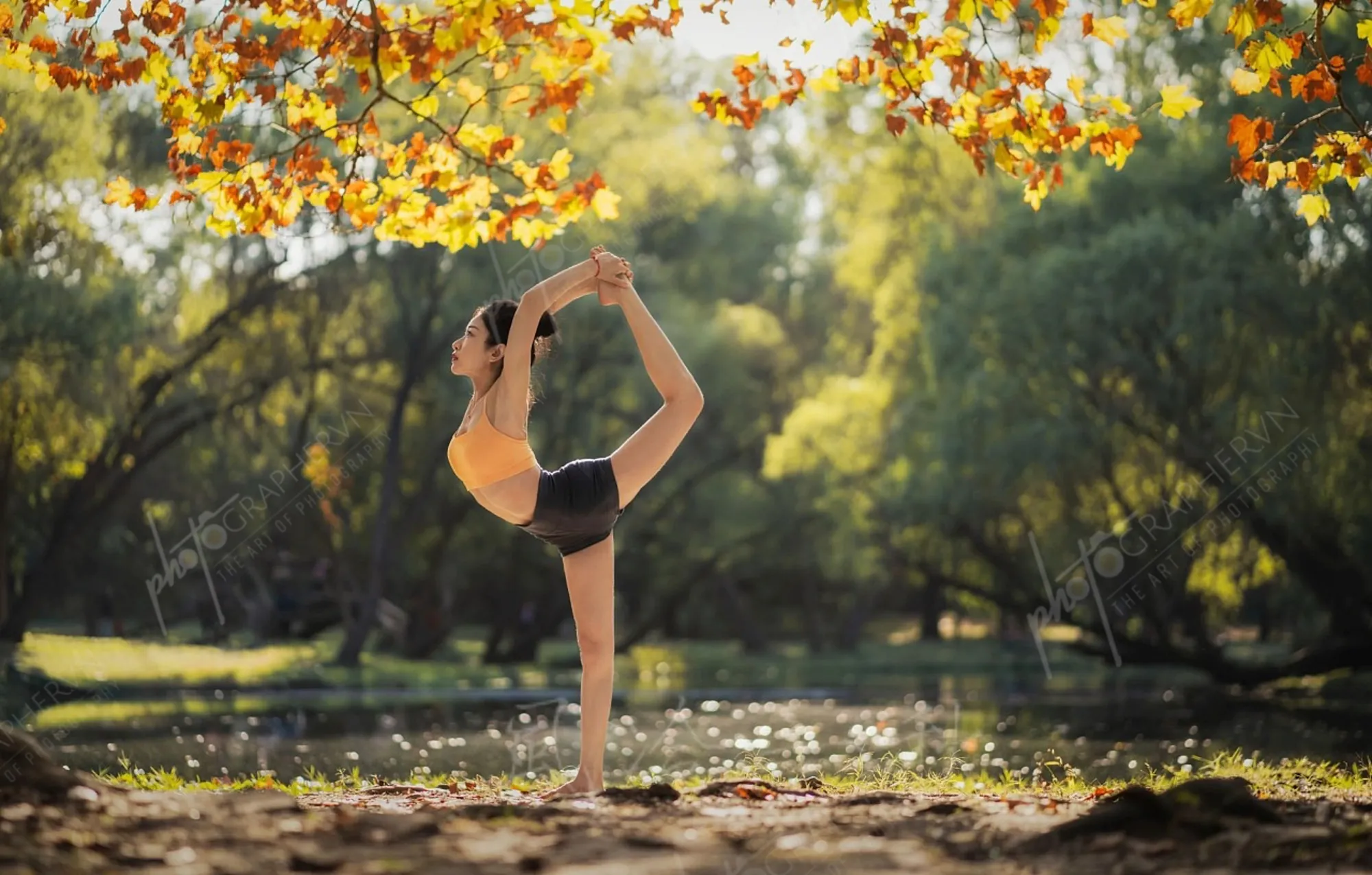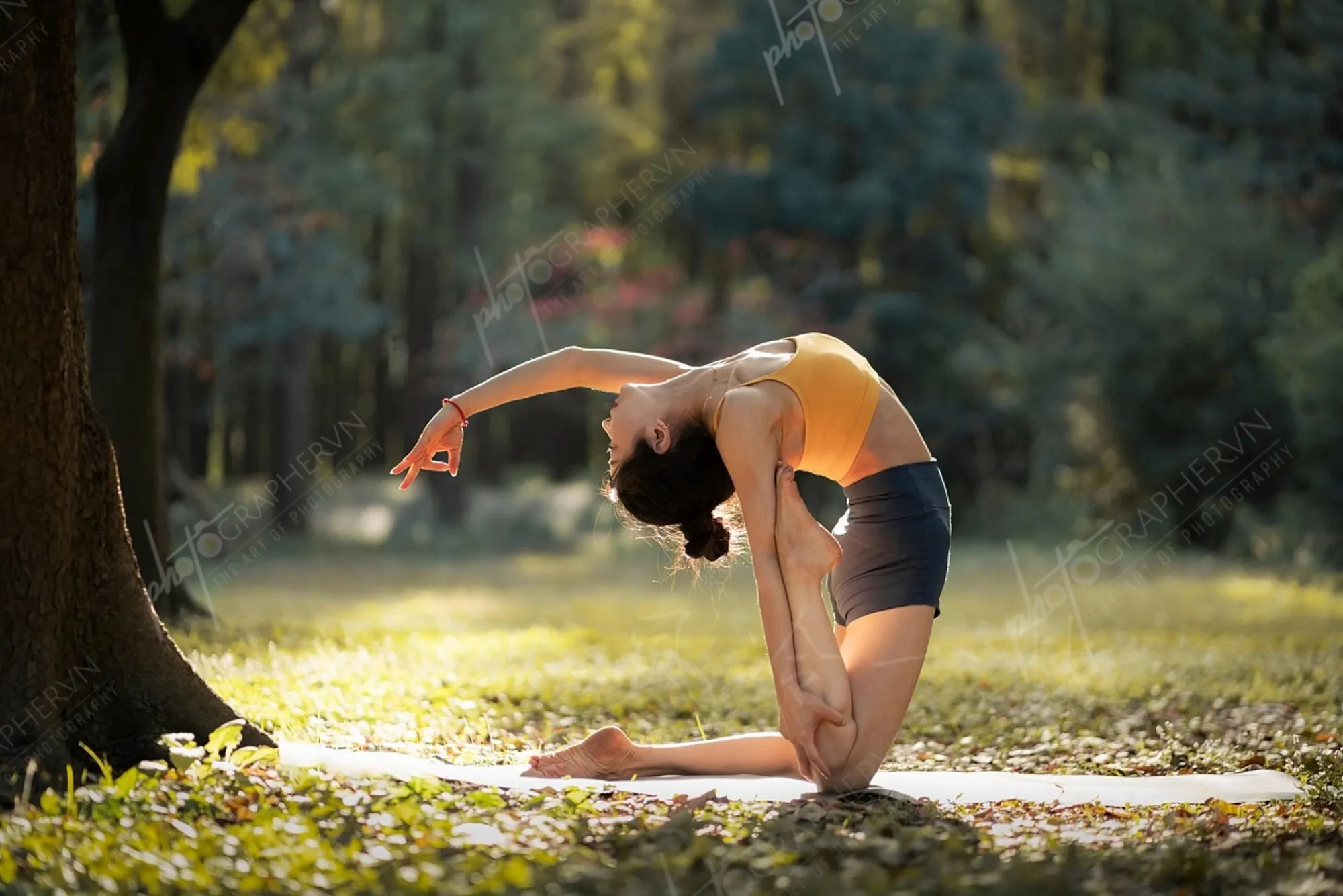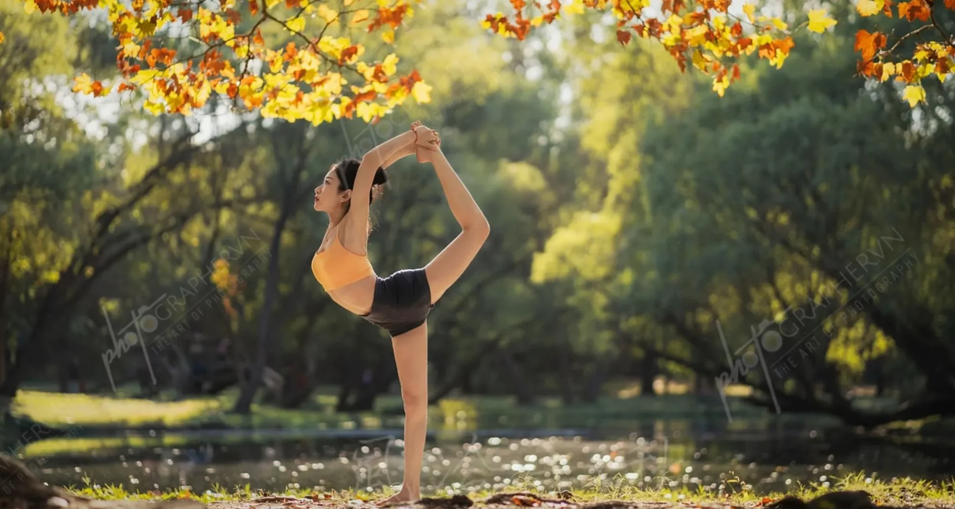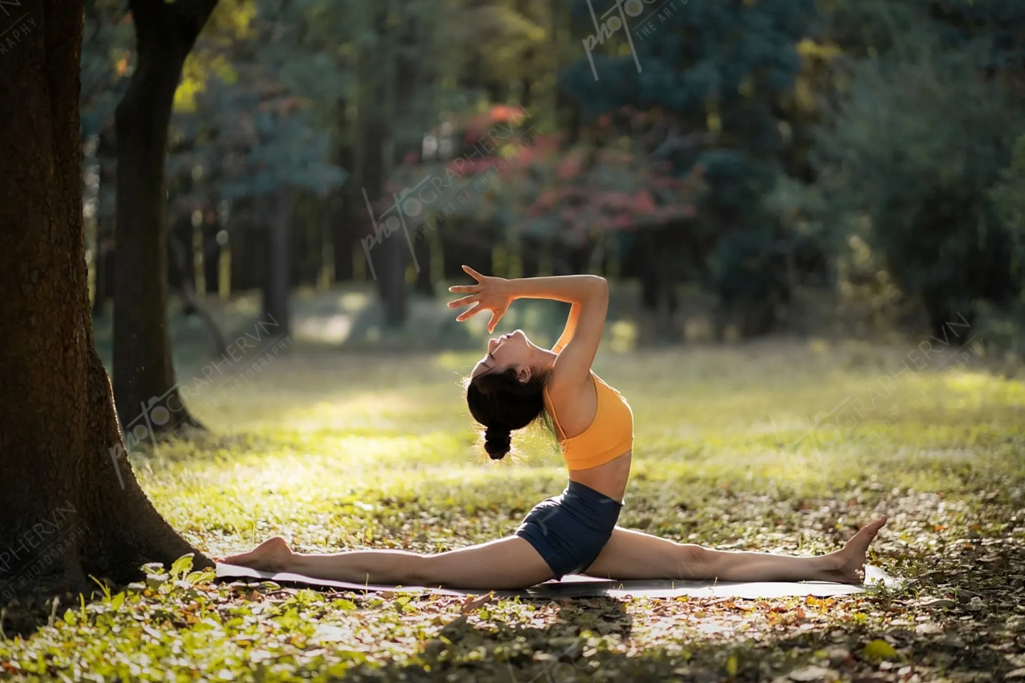 Dã ngoại – nữ – cam – yoga – ngoài trời – cây cỏ – mùa thu- DNBASIC003