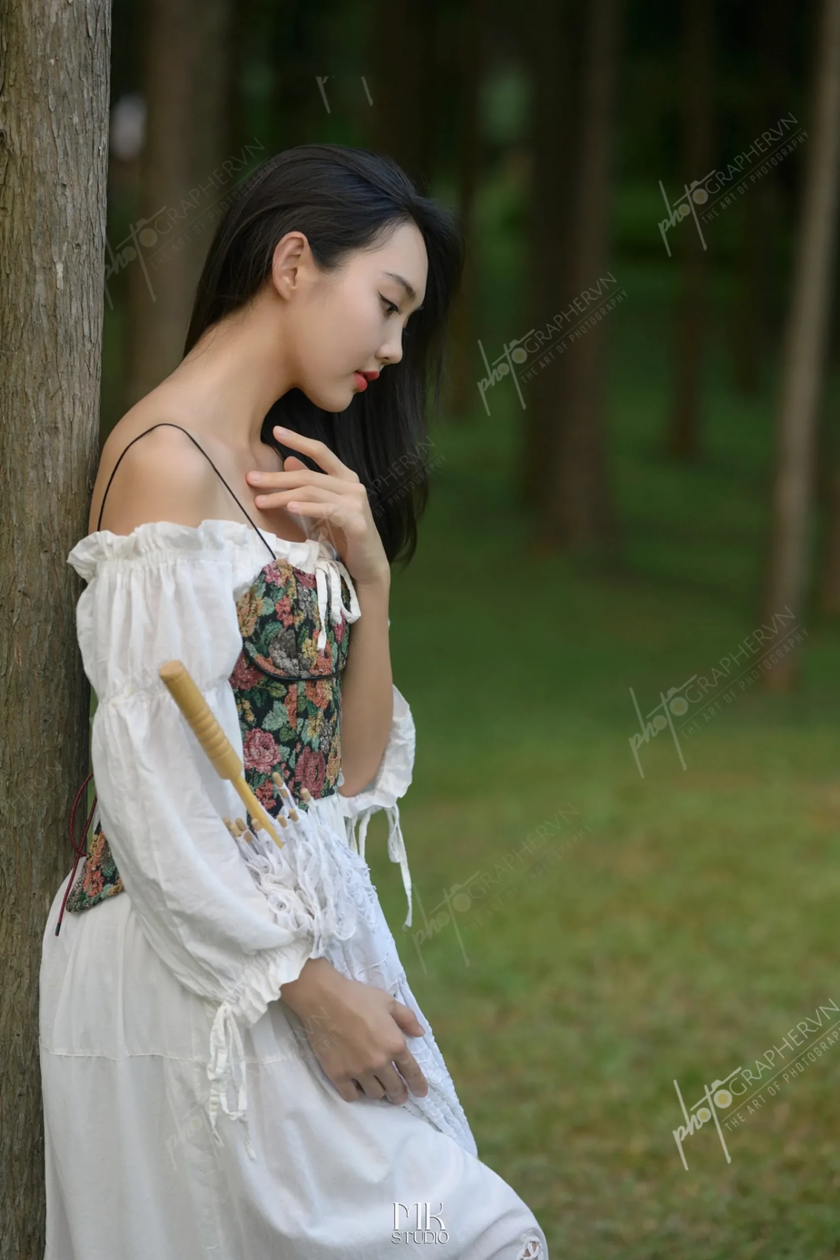 Dã ngoại – nữ – trắng – xanh lá – tươi tắn – dễ thương – trong trẻo – ngoài trời – hồ sen – DNVIP004