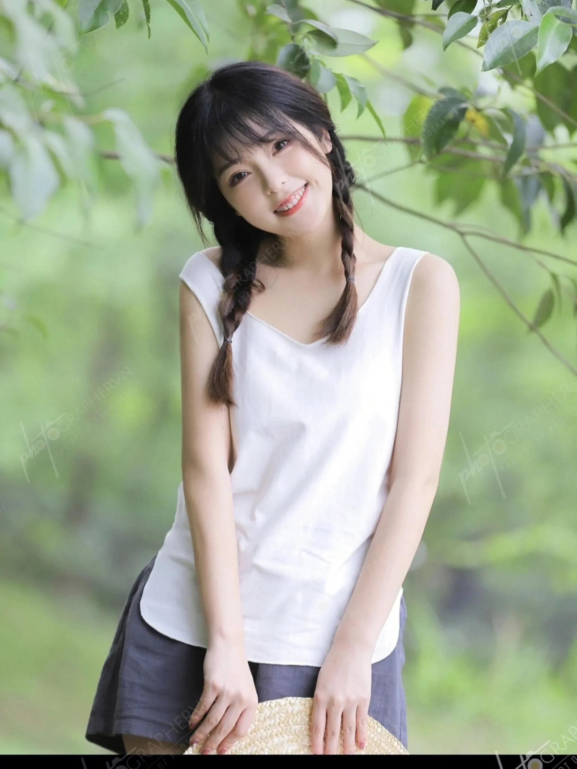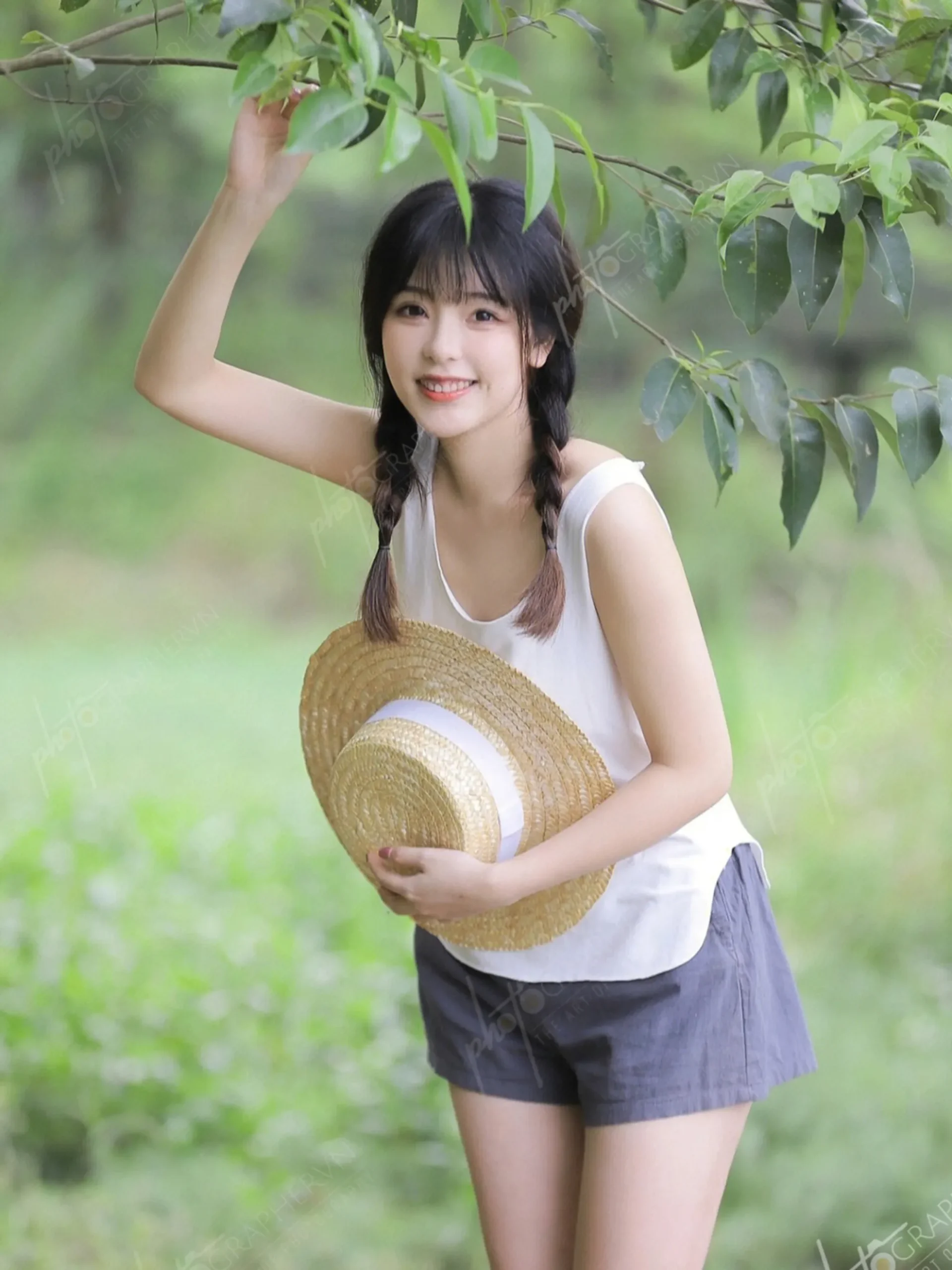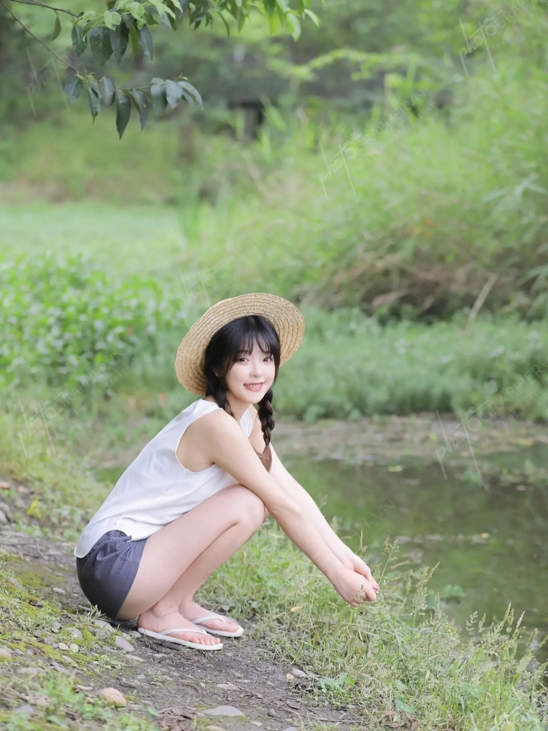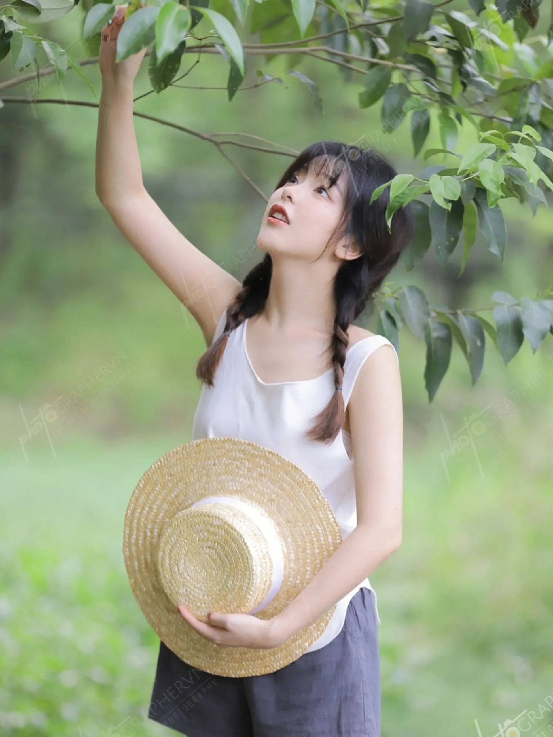 Dã ngoại – nữ – trắng – xanh lá – trẻ trung – dễ thương – đơn giản – ngoài trời – quê – cây cỏ – mũ – DNGOLD001